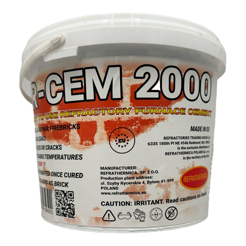 R-CEM 2000 Terracotta Refractory Cement is a professional-grade, ready-to-use bulk adhesive designed for industrial applications in high-temperature environments. Packaged in a large 3.5-liter (118 fl oz) pail, this value pack is ideal for multiple repairs or large-scale jobs. Formulated with a self-indicating terracotta pigment, it visibly changes color near its temperature limit to signal proper curing. Engineered for excellent thermal shock resistance, it bonds reliably to firebrick, ceramic, metal, stone, and concrete. Whether you’re reinforcing fireplace masonry, sealing seams in refractory linings, or insulating furnace structures, R-CEM 2000 is your trusted solution. Perfect for bulk purchases, contractor use, or homeowners seeking long-lasting results without the hassle of mixing. A smart choice for heavy-duty repairs where durability and efficiency are key.